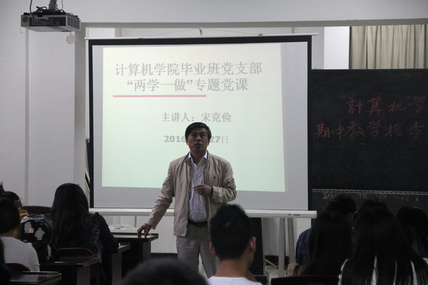 宋克俭向全体党员解读了什么是“两学一做”,帮助毕业班党员解决了“学什么、怎样做”的困惑。他强调大学的学习生活即将结束,此时此刻毕业班党支部的战斗堡垒作用尤其重要,希望党员们带头站好最后一班岗,在就业、文明离校等方面切实做好模范带头作用,同时要在学习中争当“四讲四有”党员:讲政治有信念、讲道德有品行、讲规矩有纪律、讲奉献有作为。