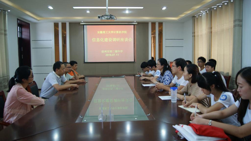 农村中小学信息化建设调研。7月11日下午,实践团来到了埇桥区西二铺中学,与公司相关负责人进行了信息化建设座谈,了解并收集到“互联网+”背景下宿州地区中小学信息化建设的第一手资料。随后,志愿者们来到了人流量聚集的人民广场,向当地居民开展了信息化建设的问卷调查。