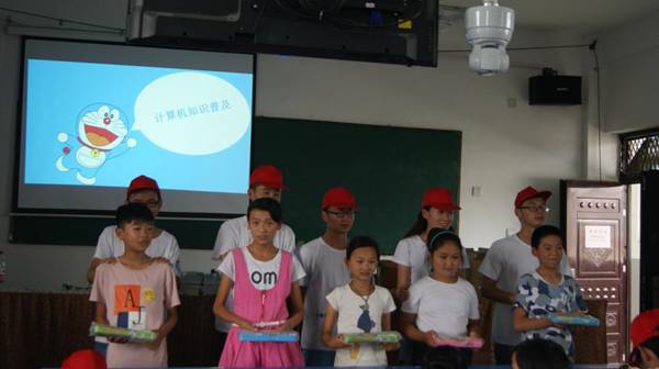 爱心支教活动。7月12日下午,志愿者们在符离镇中心小学,通过播放幻灯片、动画片的形式,向小员工们普及计算机的功能与应用,并设置了游戏和现场问答环节,受到同学们的热烈欢迎。最后,志愿者们向留守儿童捐赠了书籍、文具等学习用品。