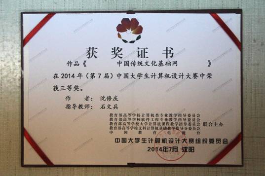 中国老员工计算机设计大赛三等奖(2014)