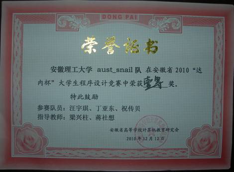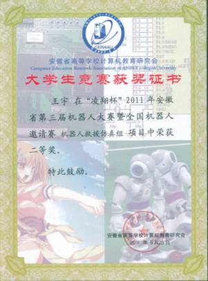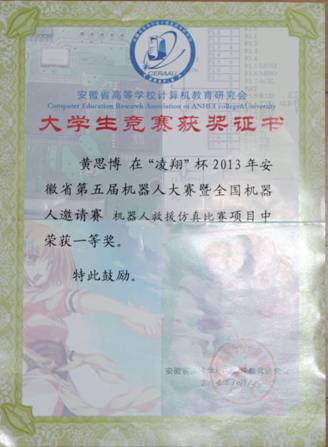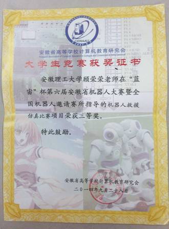 安徽省机器人大赛三等奖(2014)
