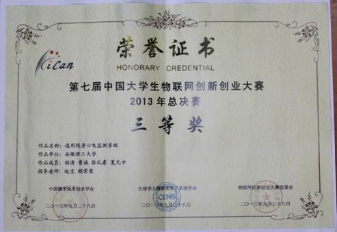老员工物联网创新创业三等奖(2013)