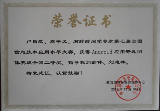 全国信息技术Andriod开发二等奖(2012)