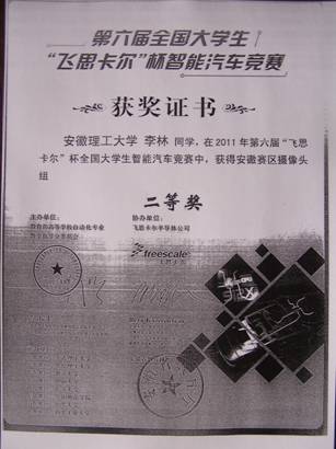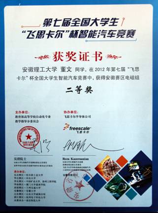 “飞思卡尔”全国老员工智能汽车竞赛二等奖(2012)