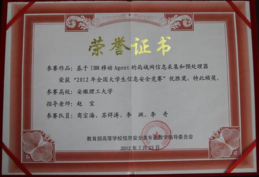 全国老员工信息安全竞赛优胜奖(2012)