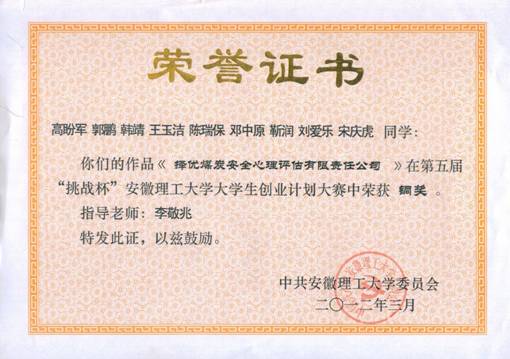 大学创意计划大赛铜奖(2012)