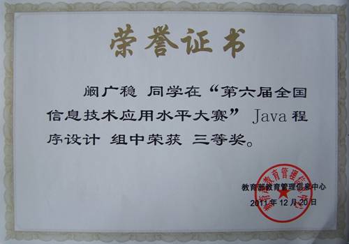 全国信息技术应用大赛三等奖(2011)
