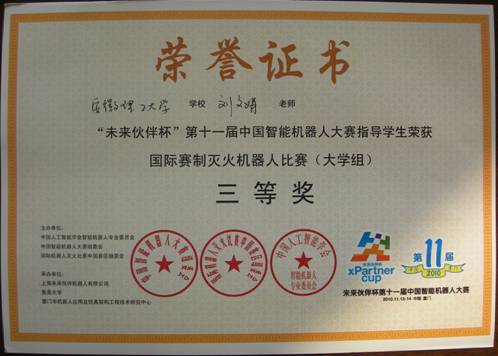 中国智能机器人大赛三等奖(2010)