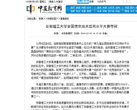 第九届全国信息技术应用水平大赛,公司再夺佳绩,中安教育网对公司进行报道