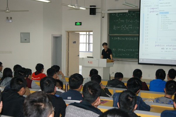 王洋老师从事软件项目开发工作10年,是我国最早的互联网后台开发人员,最早的Java工程师之一。曾在清华大学等200余所高校进行过近300余场技术讲座。讲座中,王洋老师重点介绍了JAVA语言的编程技术。他以幽默、风趣的语言带领大家进入了一个神奇的编程世界,改变了以前同学们学习编程语言的枯燥的片面看法;通过熟练的编程操作带给同学们直观的编程感受,活泼的乌龟、漂亮的星空、大家熟悉的雷电游戏等多样化的应用操作得到了同学们热烈的掌声。王洋老师用寓教于乐,深入浅出的教学方法,让同学们觉得计算机编程不再仅仅是简单的理论学习,更需要亲自实践,多动脑、多动手。