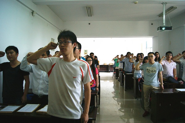 最后,全体毕业生党员在党员代表郜泽龙同学的带领下,重温入党誓词,集体宣誓继续保持和发扬安理人的优良传统,在新的人生阶段自觉践行“三严三实”精神,书写人生新的篇章。