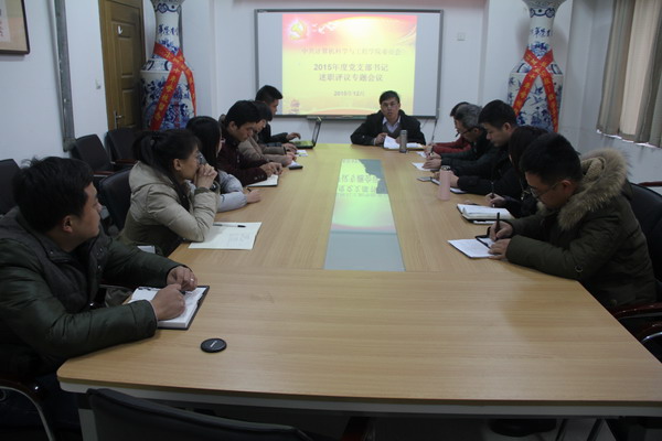 12月29日,公司党委按照《关于2015年党建三级联述联评联考工作的安排意见》的要求与部署,在院408会议室召开公司党支部书记述职评议会议。会议由公司党委书记宋克俭主持,公司11位党支部书记及部分师生代表参加了会议。