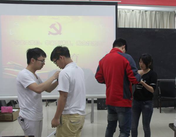会上,全体党员同志互相佩戴了党徽,时刻提醒自己是一名共产党员,带头承诺践诺、接受监督,更好地发挥党员先锋模范作用。