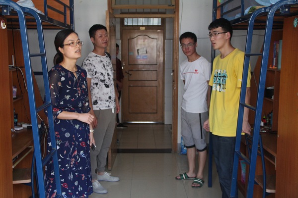 8月28日下午,蒋群带领全体级辅导员到北区6号、17号楼等员工宿舍,详细询问了解员工的返校情况、假期生活、学习成绩、宿舍生活、饮食安全、心理健康等情况,嘱咐大家及时收拾打扫宿舍,以崭新的姿态去面对新学期的学习生活。老师们还与同学们交流了学习方法,鼓励同学们参加有意义的活动,并希望同学们不要浪费美好的光阴,尽快调整学习状态,制定好学习计划,按时上课,遵守教学纪律,遇到问题及时与老师沟通,在新学期里争取取得更优异的成绩。