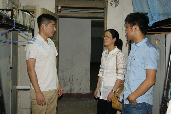 走进宿舍。6月份以来,公司党委副书记蒋群及毕业班辅导员多次走访2015届毕业生宿舍,看望毕业生并对员工宿舍进行安全隐患排查。在毕业生宿舍,蒋群认真了解每一位毕业生的就业状况,询问他们生活上、就业中存在的困难,征求毕业生对公司教育、管理和服务工作的意见建议。蒋群及毕业班辅导员细致检查了每一个宿舍的安全情况,提醒毕业生要严守校规校纪,杜绝酗酒、赌博等事件,要求各班班干部及寝室长站好最后一班岗,创造一个安全卫生、文明和谐的离校前宿舍环境。