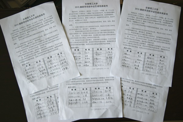 随后,贷款毕业生一一在诚信承诺书上签字,庄重承诺按时还款。最后,在员工代表吴洪建的带领下,全体与会毕业生庄严宣誓,表示文明守信,做一个自尊自爱的安理人。