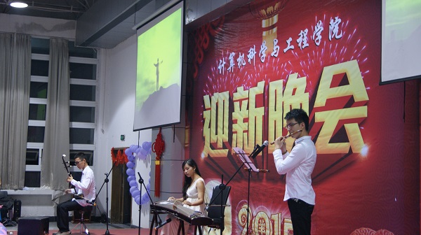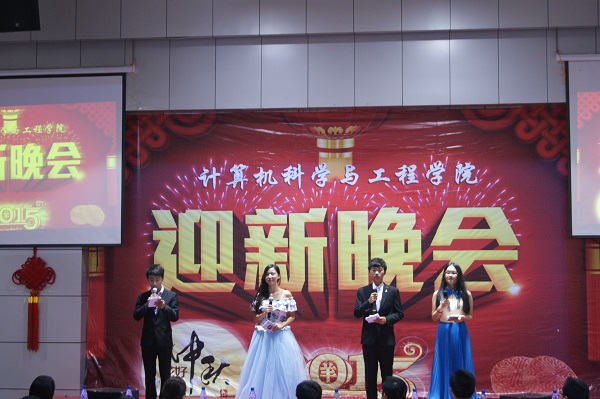 随后,在大一新生方紫荆等带来的串烧歌曲中晚会拉开序幕。整场节目精彩纷呈:唯美变幻的灯光,活泼俏皮的舞姿,诙谐幽默的相声,都博得了同学们的阵阵掌声。其中,葛斌老师一曲黄梅小调,展现了安徽特有的民韵风情;2015级徐天翔同学一曲萨克斯独奏《天亮了》,温暖动人,引起现场持久而热烈的掌声。晚会在院员工会会歌《相信我们会创造奇迹》中落下帷幕,掌声、欢呼声此起彼伏,全场化为一片欢乐的海洋。