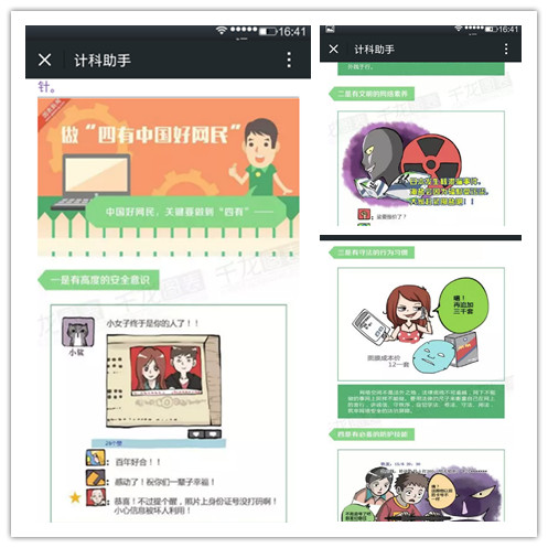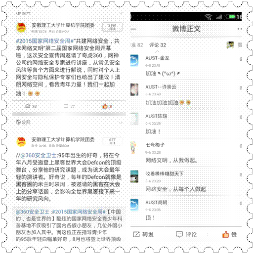 同时公司利用微信公众平台计科助手、院团委微博对活动进行进一步推广,展开线上线下大讨论,短短一天,阅读转发评论两千余次,取得了良好的宣传教育效果。