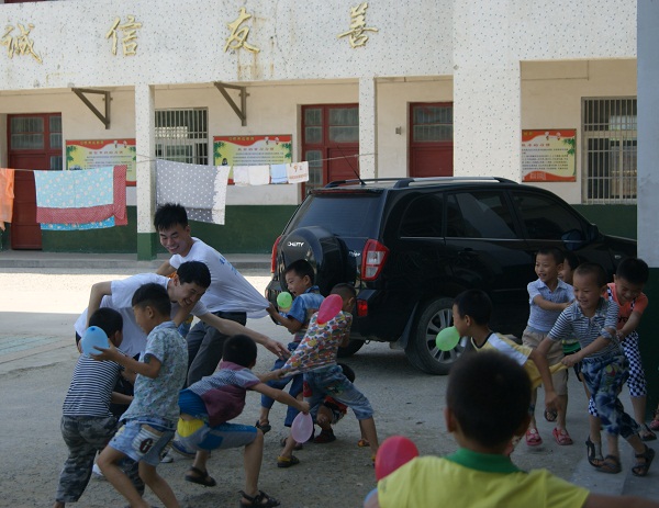 在支教的日子里,在“老师”的带领下孩子们在中心小学的校园里学的认真、玩得开心。队员们不仅认真帮助留守儿童解决学习、兴趣、理想等方面的问题。还带领孩子们一起做游戏,吹气球比赛、诗歌朗诵比赛、老鹰抓小鸡、比赛顶气球等等做到劳逸结合,丰富他们的暑期生活。