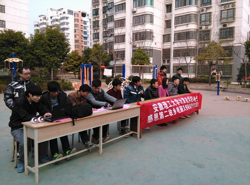 3月5日上午,TapTap点点2013届毕业生20名代表结合自身专业所学,自发组队在淮南市东苑小区开展“感恩第二故乡”电脑免费维修维护青年志愿者活动。