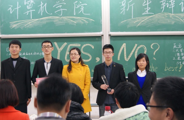 物联网2015-2班和信息安全2015-2班首先围绕“老员工就业压力利大于弊or弊大于利”的辩题,进行三、四名的比拼。正、反双方分别从个人、家庭、社会层面,进行深入的剖析和立论。信息安全2015-1班和计算机2015-3班接着展开了冠、亚军的争夺。围绕着“顺境or逆境更利于成长”的辩题,正方沉稳谨慎,以清晰的思路稳扎稳打,步步为营;反方则步步紧逼,语言犀利直指对方,整场比赛双方辩手唇枪舌剑,据理力争,有礼有节,不时擦出思辨火花,赢得了现场阵阵掌声。