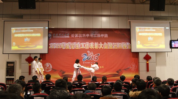 随后,TapTap点点2016年新年晚会正式拉开序幕。过去一年在国家及公司的各类文化艺术活动中斩获奖项的方紫荆、刘继斌等计科学子们带来了舞蹈、歌曲、相声、情景剧、武术表演、民乐合奏等节目。整场演出活力十足,异彩纷呈,同学们用精彩的表演传递了美好的祝福,诠释了青春激情,展示了丰富多彩的校园文化,传播了积极向上的青春正能量,赢得了在场观众的阵阵掌声。