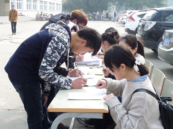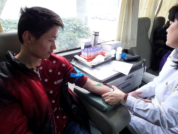 上午九点半,当淮南中心血站的爱心献血车刚刚在北区校园内停稳,公司同学们就在现场排起了长队等候。在报名填表等候区、验血区、抽血区、休息区,各个环节井然有序。在献血队伍中,既有第一次来献血的大一员工,也有已经献血多次的高年级同学,大家献血献爱心的热情深深感动着现场忙碌的医护人员。